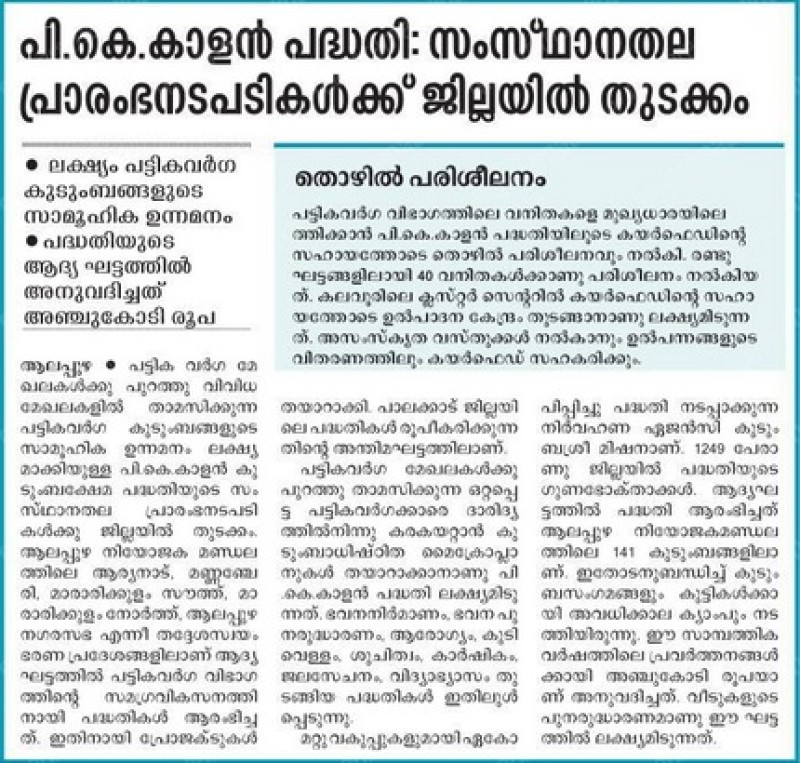 District: Alappuzha, News about construction unit district levele training News Paper: Malayala Manorama