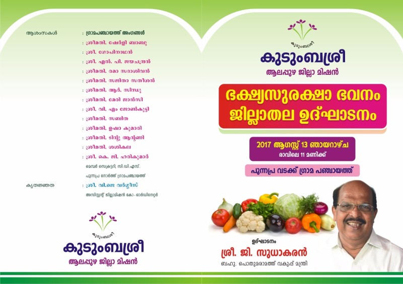 13/08/17 ഭക്ഷ്യ സുരക്ഷാ ഭവനം ജില്ലാ തല ഉത്ഘാടനം ബഹു. പൊതുമരാമത്ത് വകുപ്പ് മന്ത്രി ജി. സുധാകരൻ നിർവഹിക്കുന്നു.