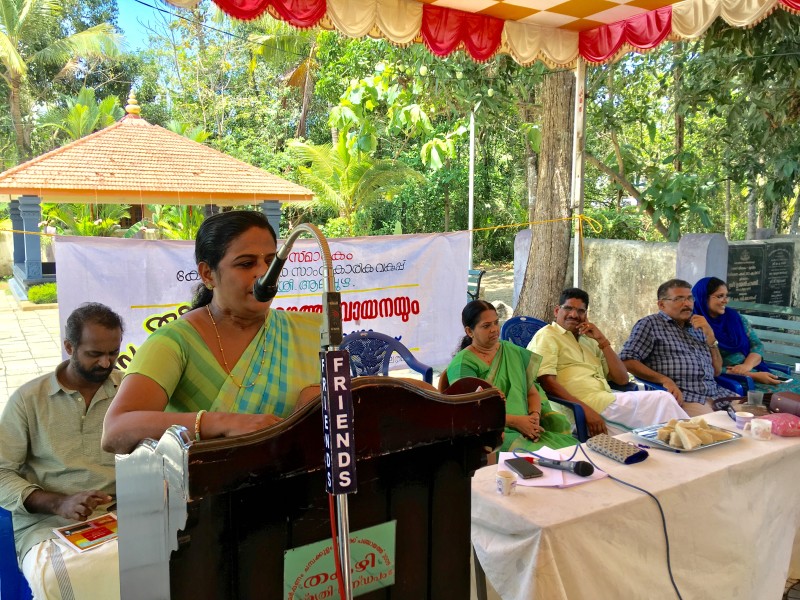 DMC Suja Eapen delivering the presidential address during the two day Sahithya camp held at Takazhy smarakam on 16.04.2018