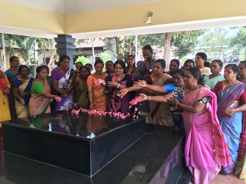 ADMC K.B. Ajayakumar, PRO Jayanthy Narendran with the participants paying tribute to Takazhy Shivasankara Pillai during the Ormapusthakam writing workshop conducted on 09.03.2018