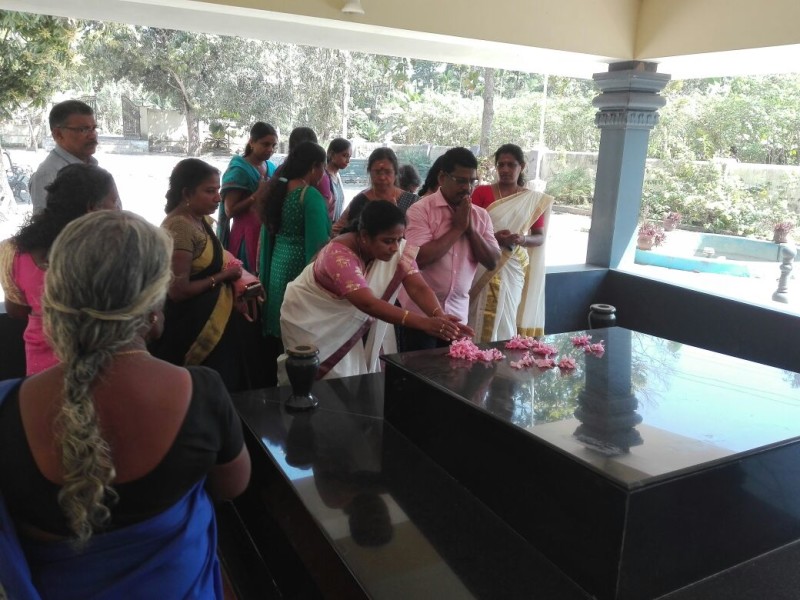 DMC Suja Eapen paying homage to Thakazhi Sivasankara Pilla during the Ezhuth Shipashala held there on January 15, 2018