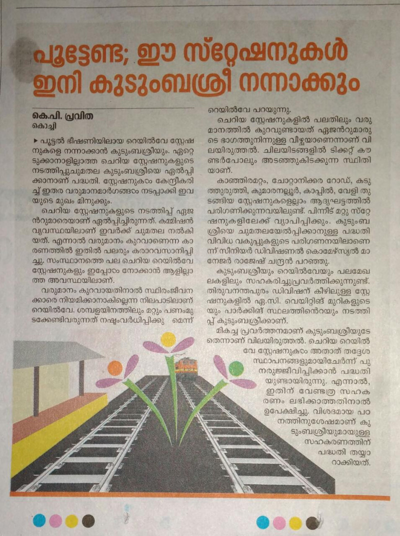 kudumbasree mission take up cleaning and maintenanceactivities at railway stations