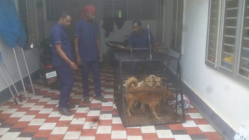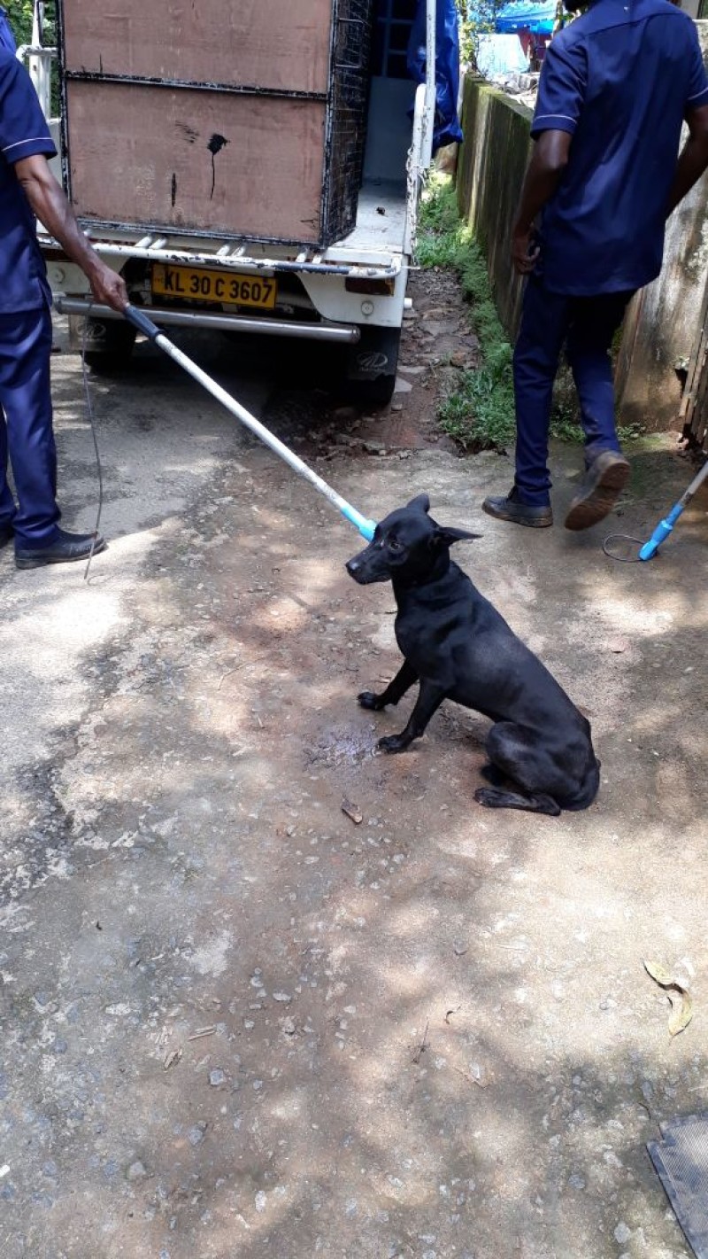 Unit in Thodupuzha with captured dog for transport