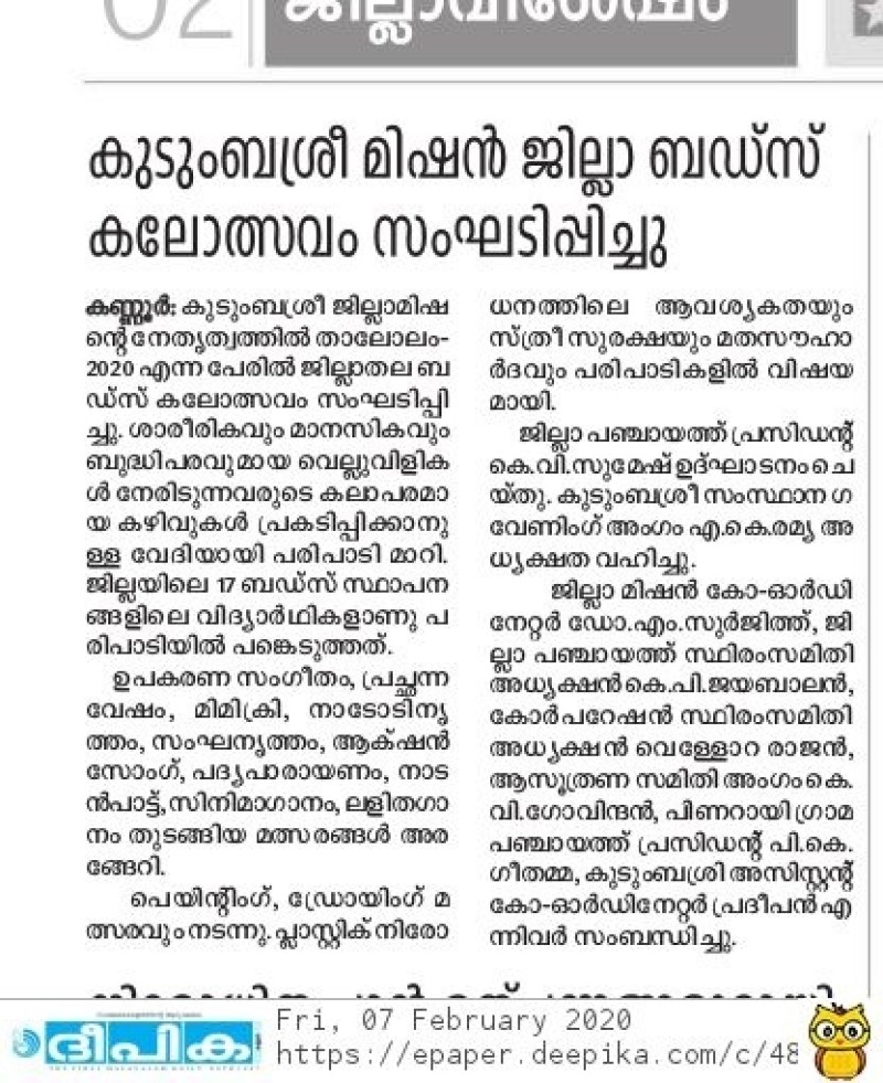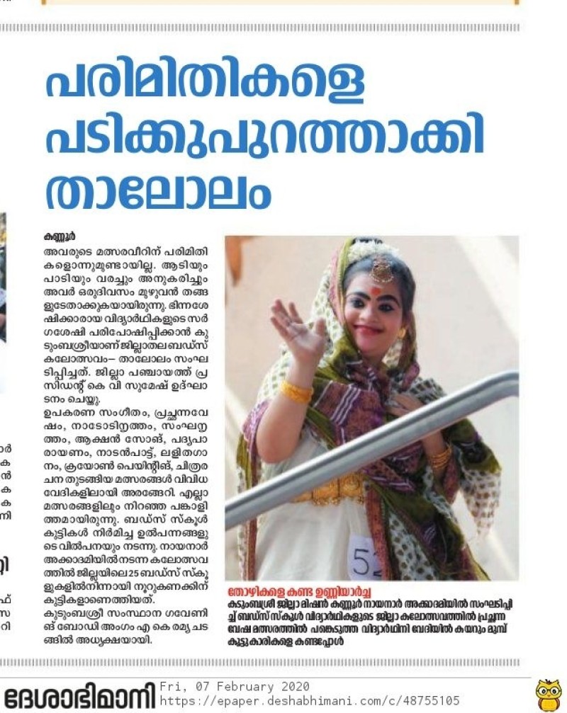 BUDS FEST THALOLAM 2020 NEWS KERALA KAUMUDI