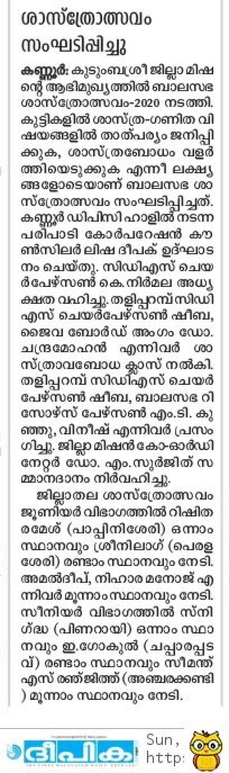 BALASABHA SASTHROLSAVAM DEEPIKA NEWS ON 8.2.2020