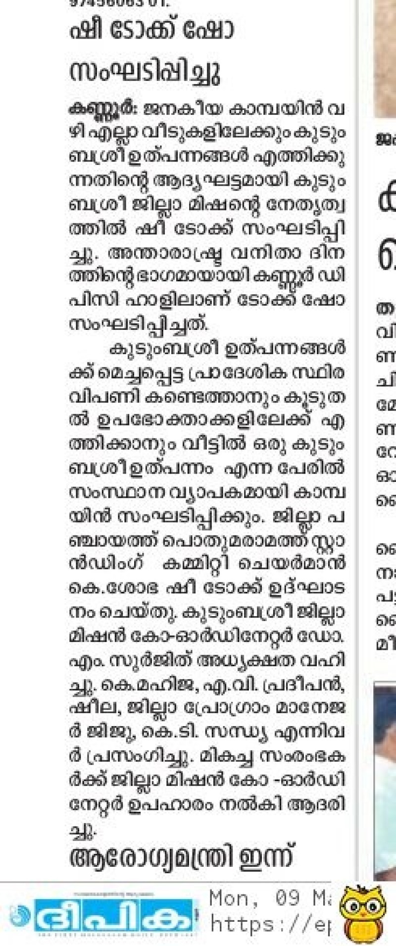 Malayala Manorama 07.03.2020 she talk news