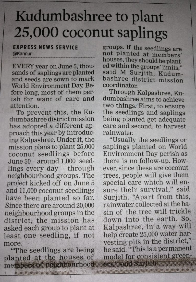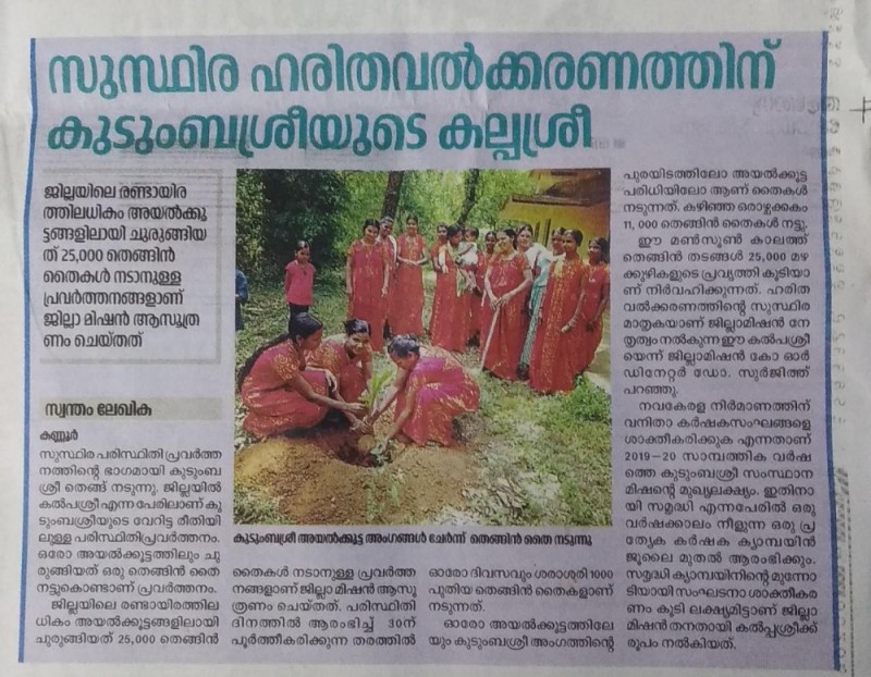 Kudumbashree District mission celebrates 2019 environment day by planting coconut saplings- Kalpahsree Project