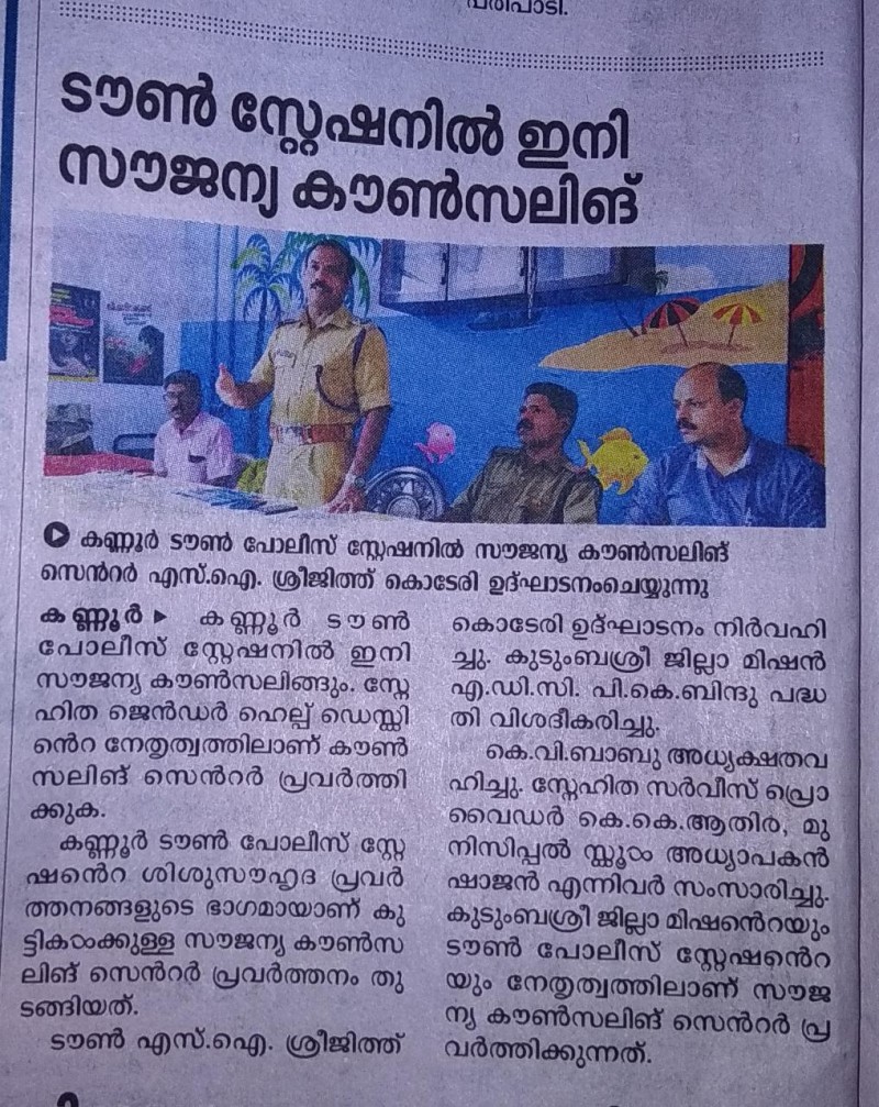 launched snehitha counseeling centre in town police station with the convergence of Home department