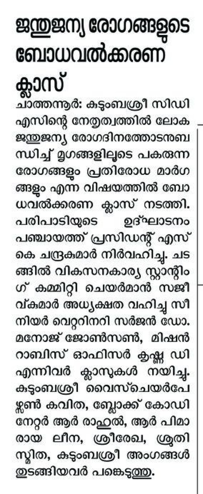 Wiorld Zoonoses Day Program CDS Level |Deshabhimani | 09.06.2025