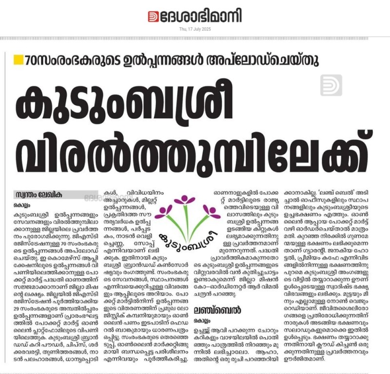 Kudumbashree Pocket Mart | Deshabhimani | 17.07.2025