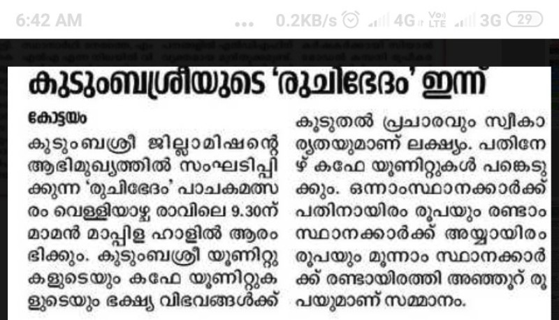 Cookery Contest Ruchibhetham announcement