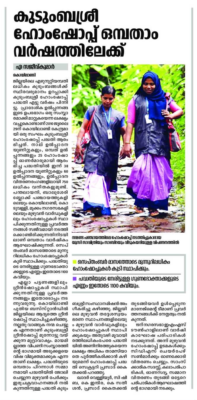 news about Kudumbashree Home shop in Deshabhimani on 12/08/2018