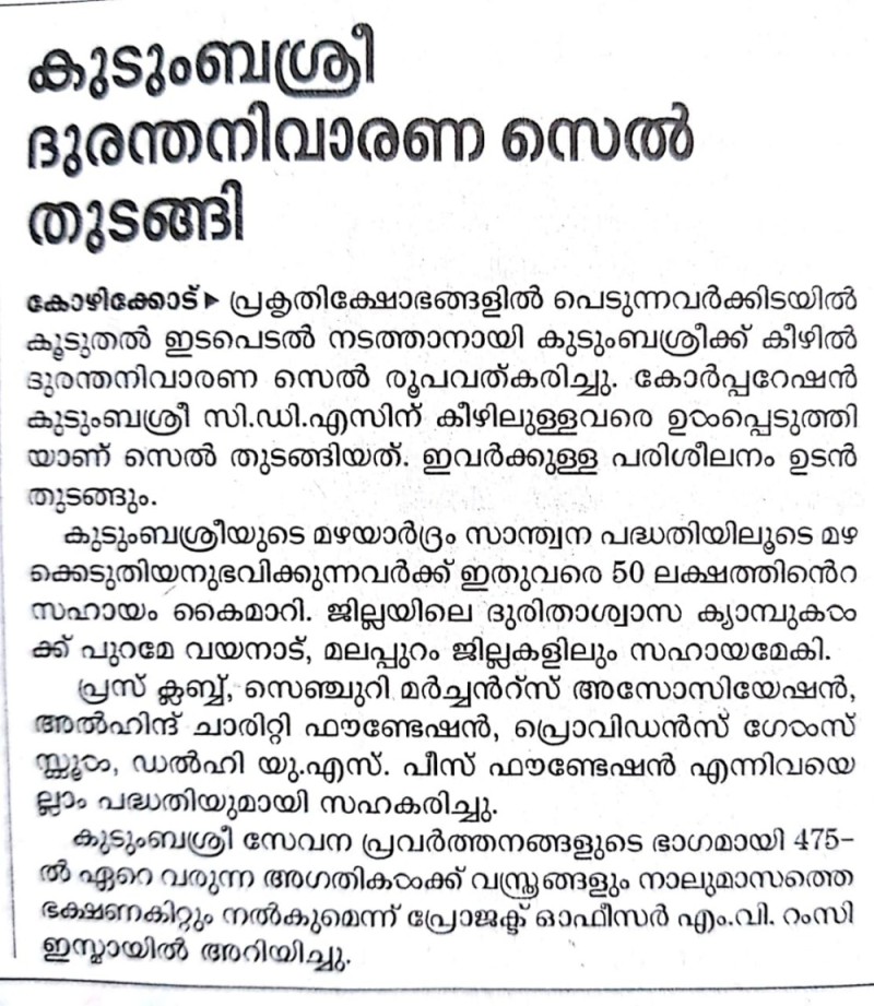 News on Kudumbashree Constructions, 06-August-2018,Deepika
