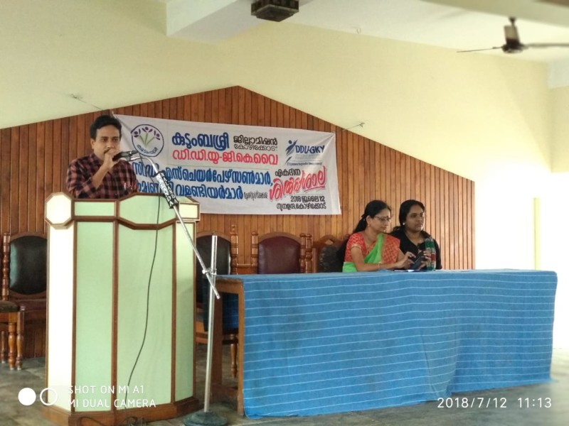DDU-GKY Oneday Workshop for CDS chairpersons and comminity volunteer in Nalanda Auditorium Kozhikode on 12/07/2018