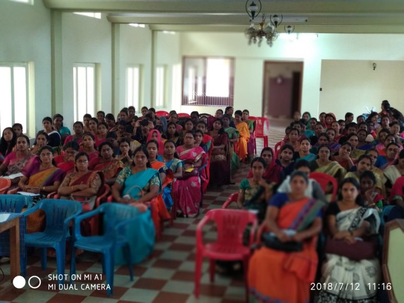 District mission co-ordinator Kavitha PC speaking in DDU-GKY Oneday Workshop for CDS chairpersons and comminity volunteer in Nalanda Auditorium Kozhikode on 12/07/2018