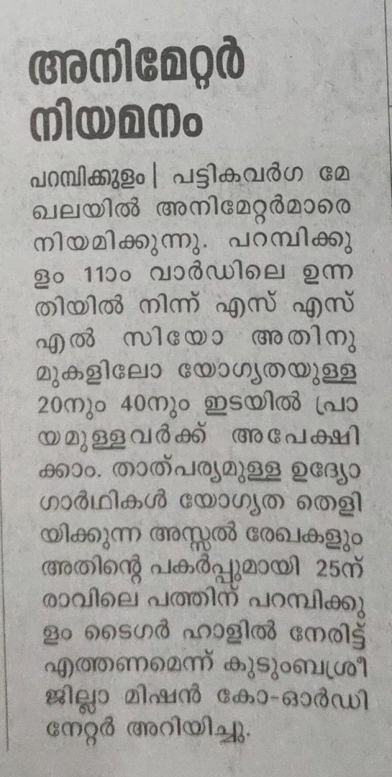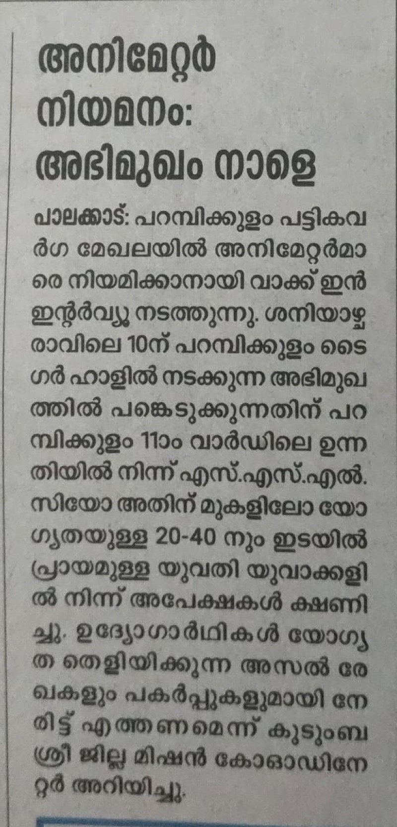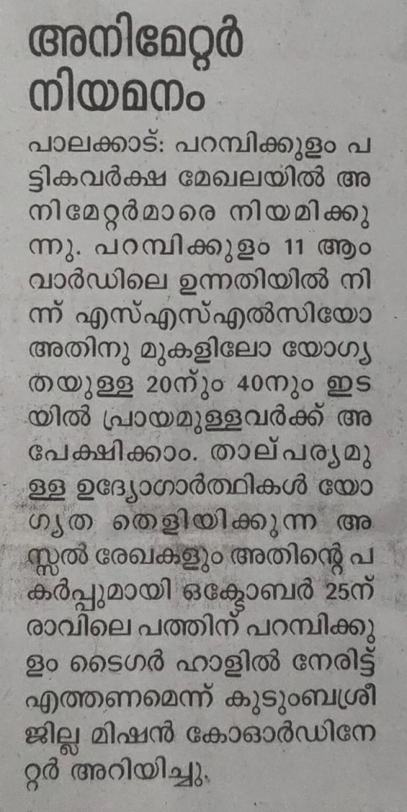 ആനിമേറ്റർ നിയമനം -24/10/2025