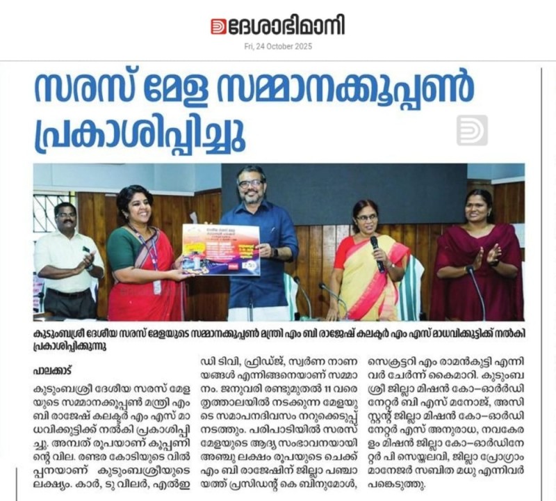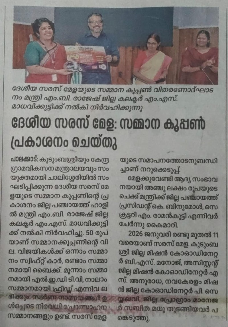 ദേശീയ സരസ് മേള സമ്മാനക്കൂപ്പൺ പ്രകാശിപ്പിച്ചു -24/10/2025