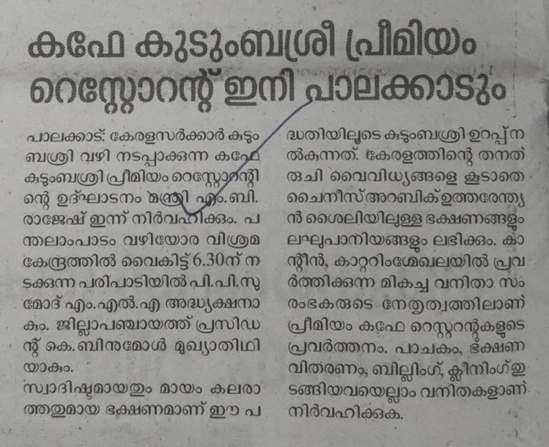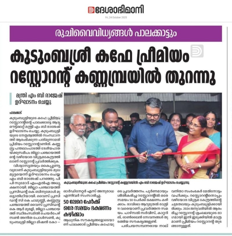 കഫെ കുടുംബശ്രീ പ്രീമിയം റെസ്റ്റോറന്റ് ഇനി പാലക്കാടും -23/10/2025