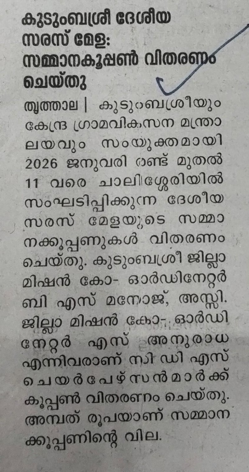 കുടുംബശ്രീ ദേശീയ സരസ് മേള സമ്മാനക്കൂപ്പൺ വിതരണം ചെയ്തു -31/10/2025