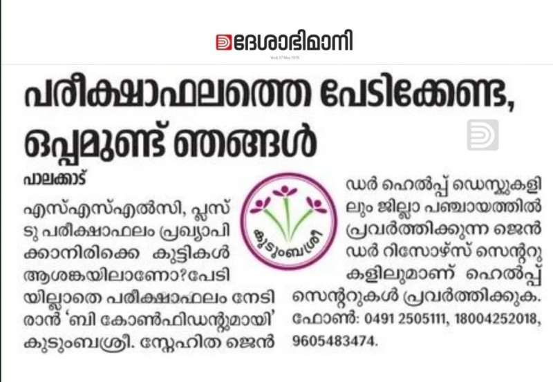പരീക്ഷാഫലം നേരിടാൻ ബി കോൺഫിഡന്റുമായി സ്നേഹിത ജൻഡർ ഹെല്പ് ഡെസ്ക്-07/05/2025