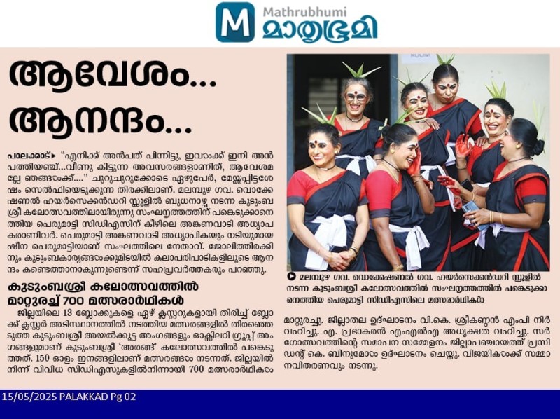 അരങ്ങ് ജില്ലാതല സർഗോത്സവം മലമ്പുഴ -15/05/2025