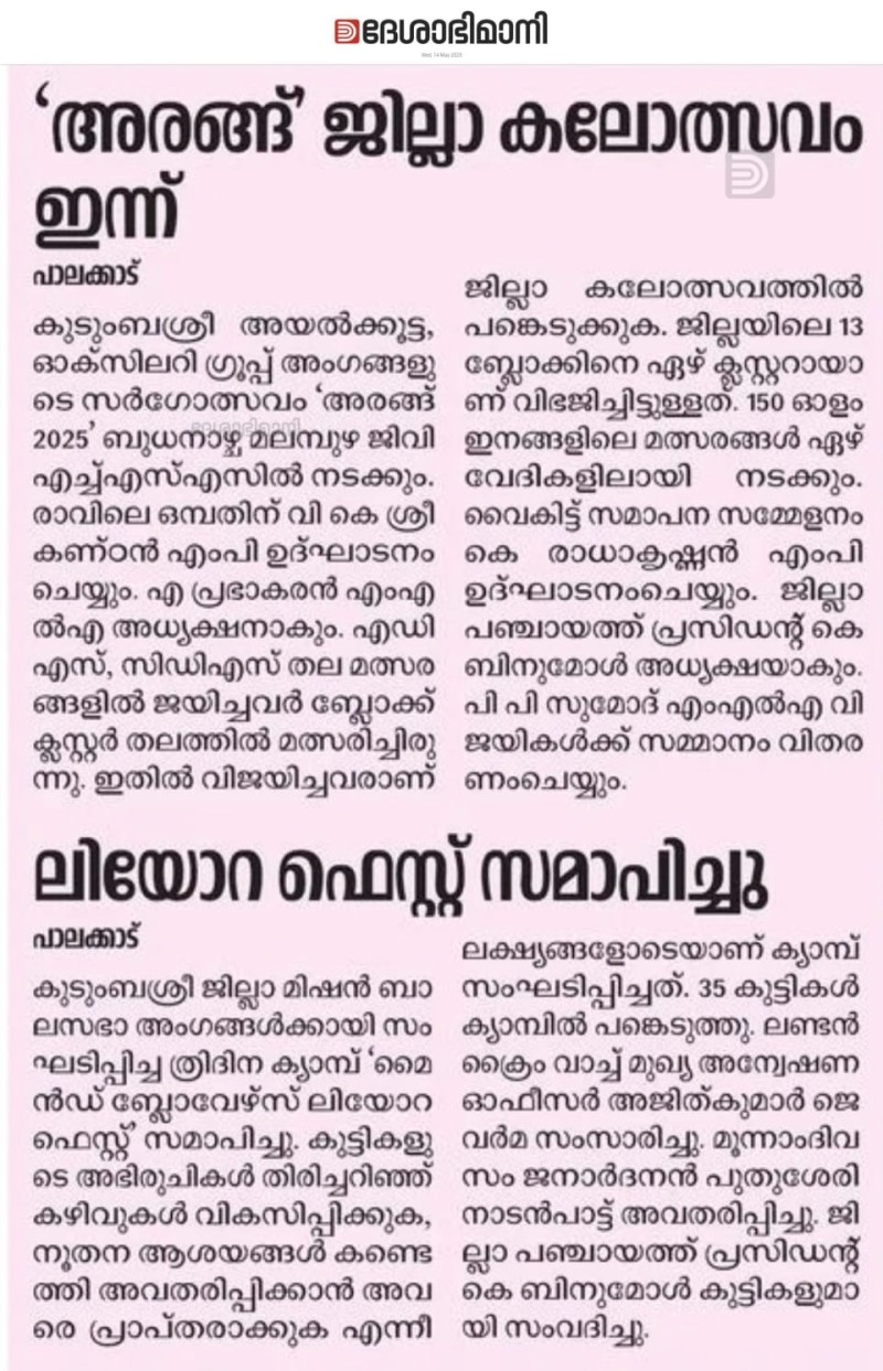 അരങ്ങ് ജില്ല കലോത്സവം/ ലിയോറ ഫെസ്റ്റ് -14/05/2025