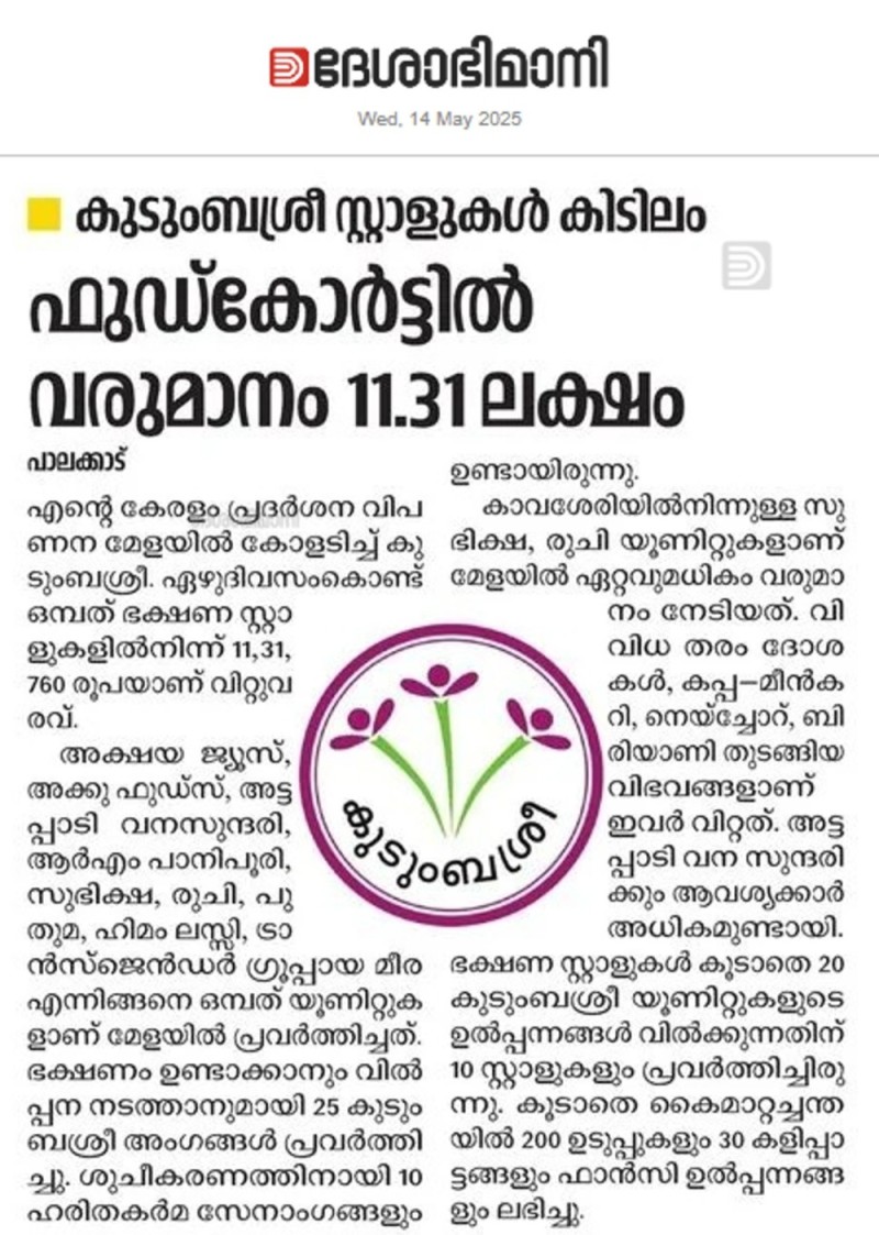 എന്റെ കേരളം പ്രദർശന വിപണ മേളയിലെ കുടുംബശ്രീ ഫുഡ് സ്റ്റാളുകൾ -09/05/2025