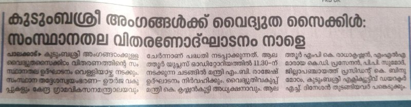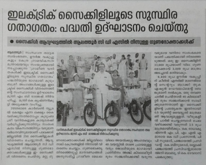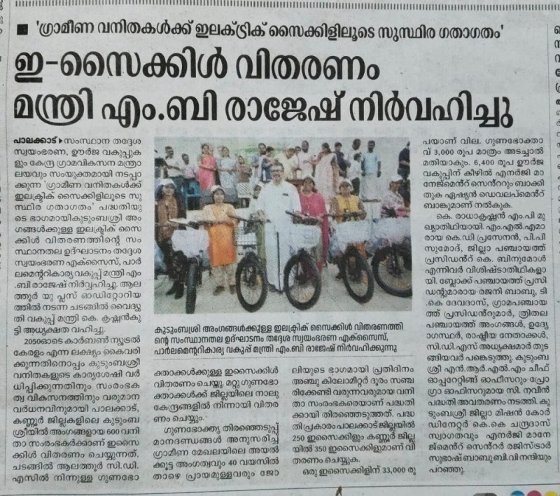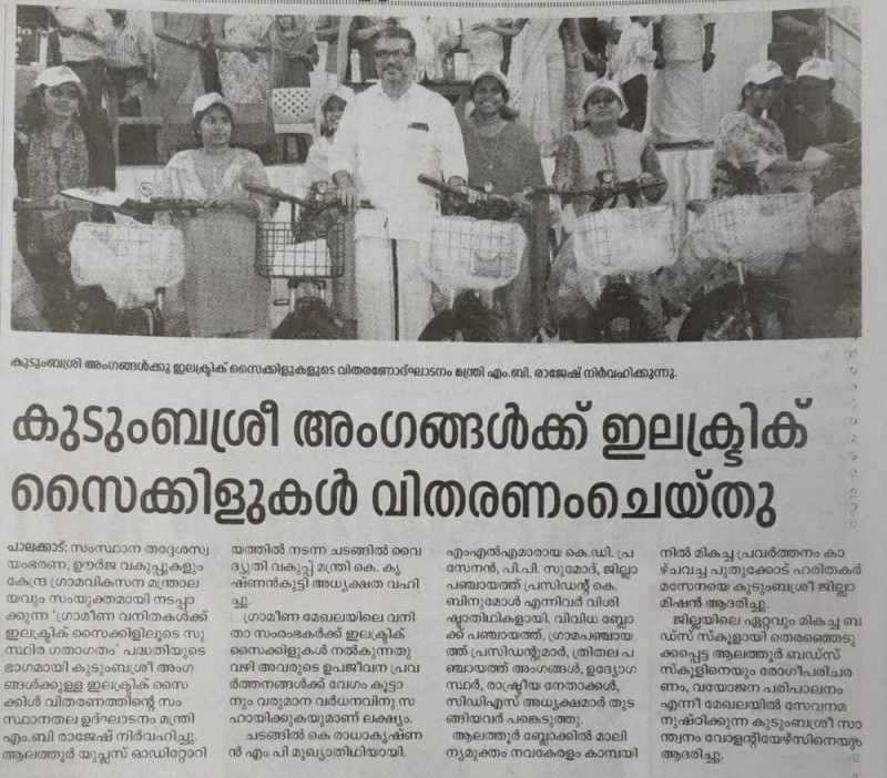 കുടുംബശ്രീ അംഗങ്ങൾക്ക് ഇലക്ട്രിക്ക് സൈക്കിൾ-20/04/2025