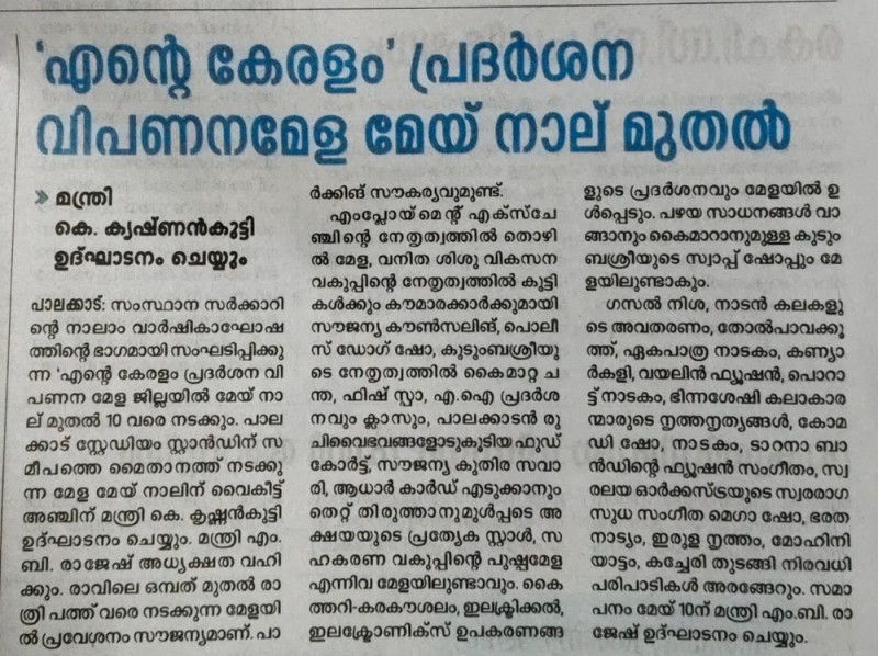 എന്റെ കേരളം പ്രദർശന വിപണ മേള-20/04/2025