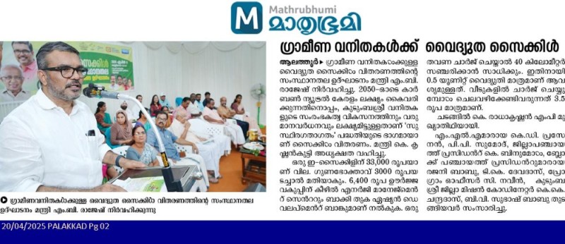 ഗ്രാമീണ വനിതൾക്ക് വൈദ്യുത സൈക്കിൾ-20/04/2025