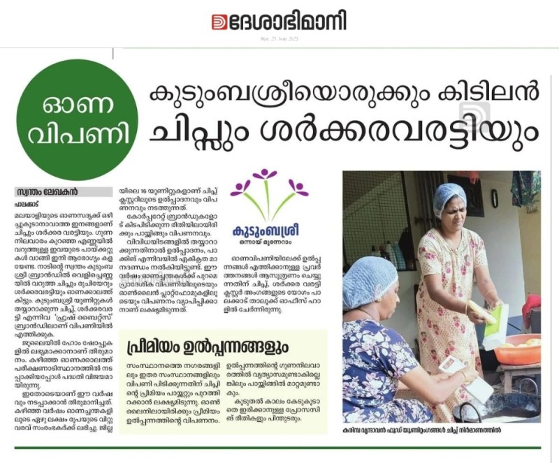 ഓണ വിപണിയിൽ കുടുംബശ്രീയൊരുക്കും കിടിലൻ ചിപ്സും ശർക്കരവരട്ടിയും-23/06/2025