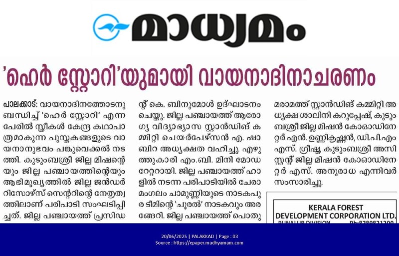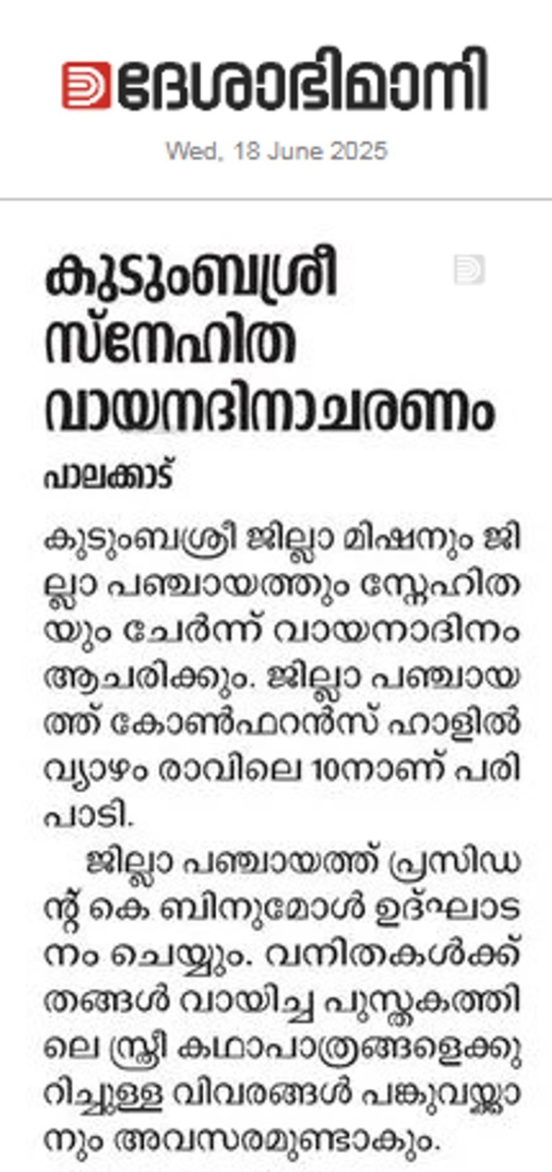 വായനയിൽ വാചാലരായി വനിതകൾ -20/06/2025