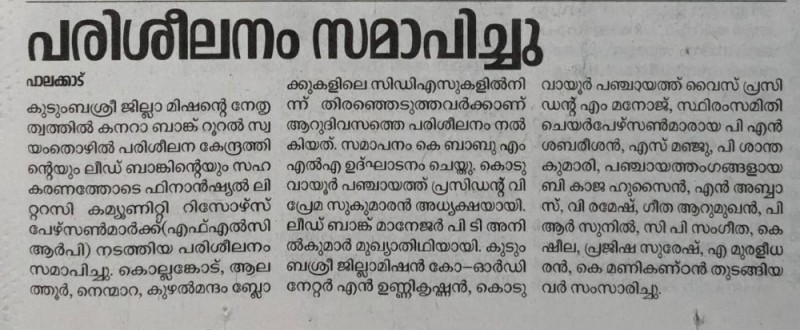 റിസോഴ്സ് പേഴ്സൺമാർക്കുള്ള പരിശീലനം സമാപിച്ചു-22/06/2025