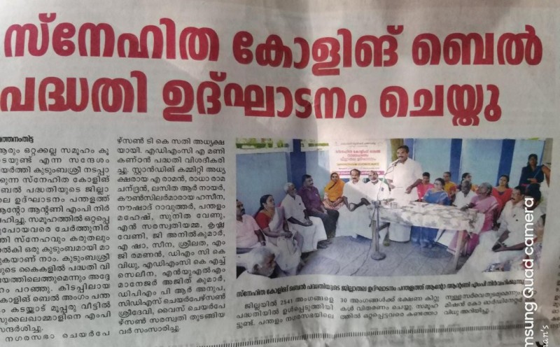 Snehitha Calling Bell Varacharanm District Level Inauguration by Hon.MP Anto Antony - Deshabhimani-16-11-2019