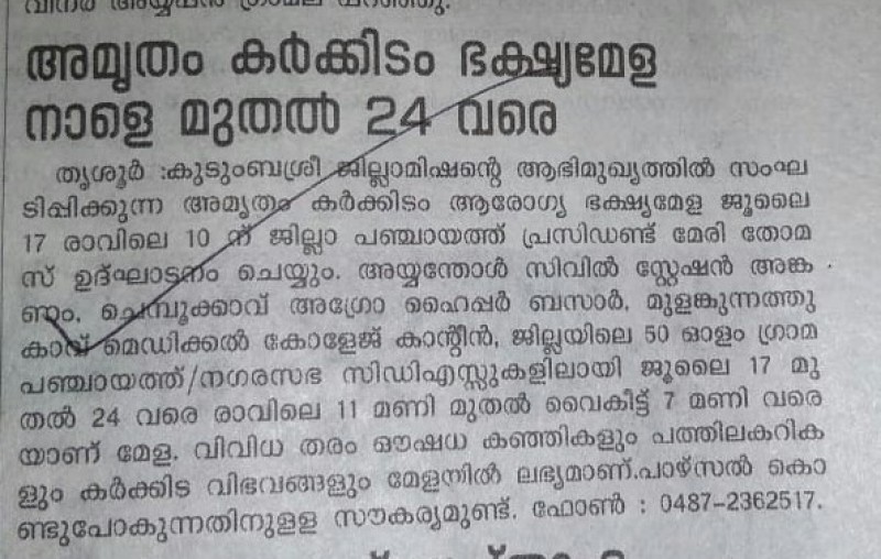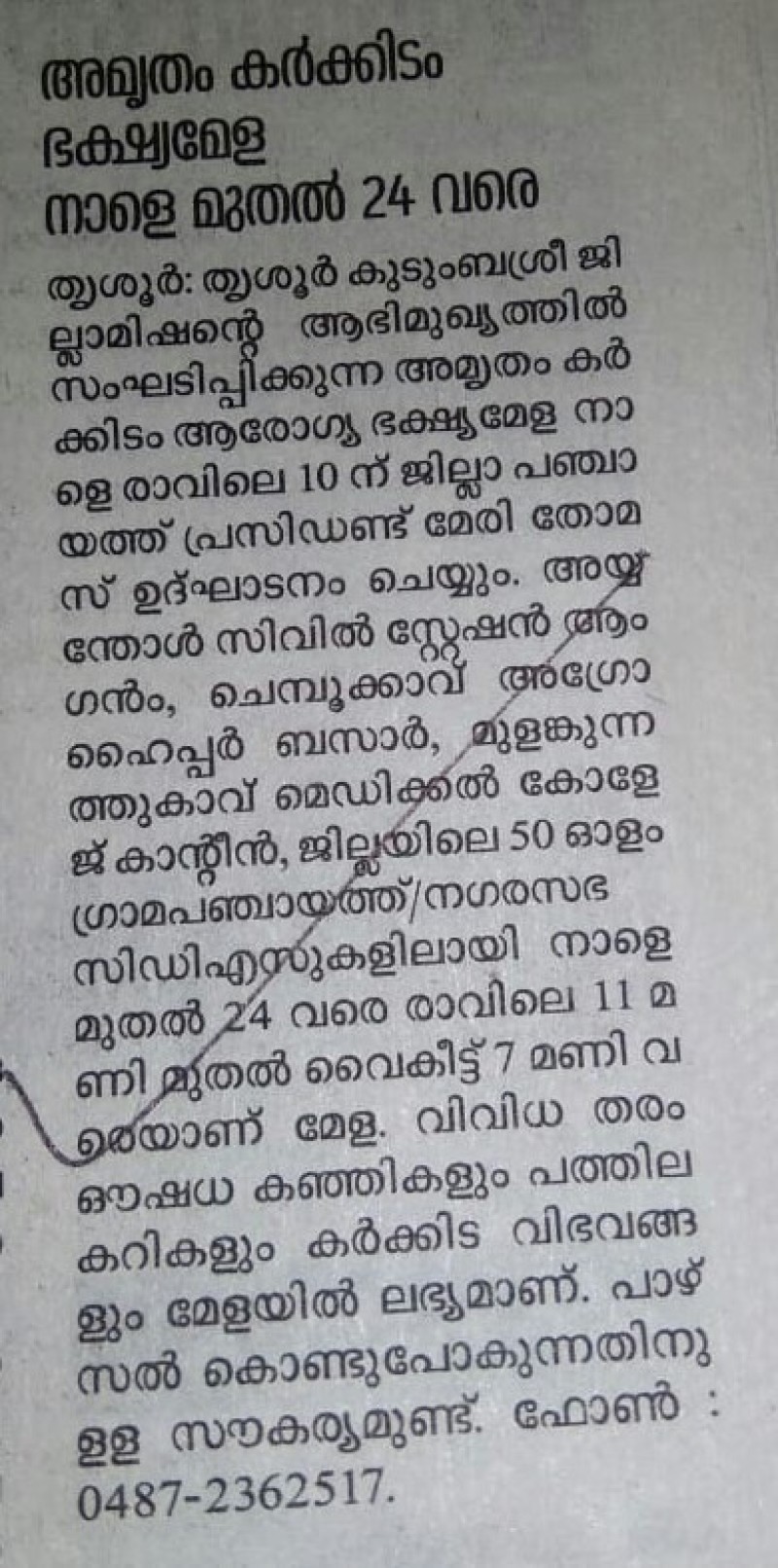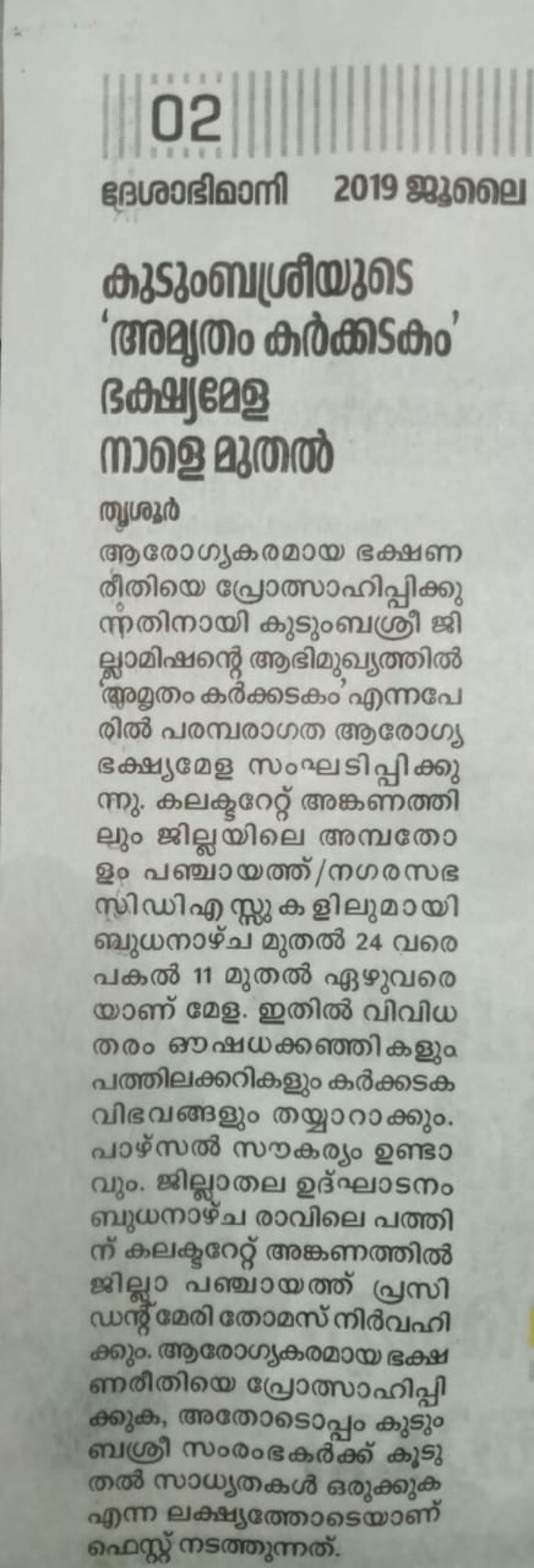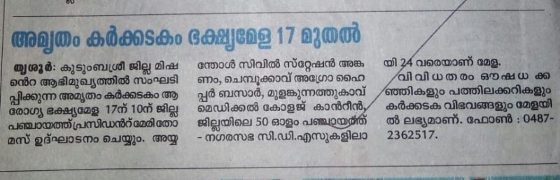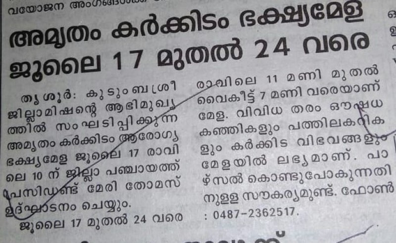 Amrutham Karkkidakam Ethnic Fest - Deshabimani Daily 16.7.19