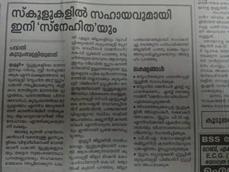 Snehitha school (Mathrubhoomi 2.06.2019)
