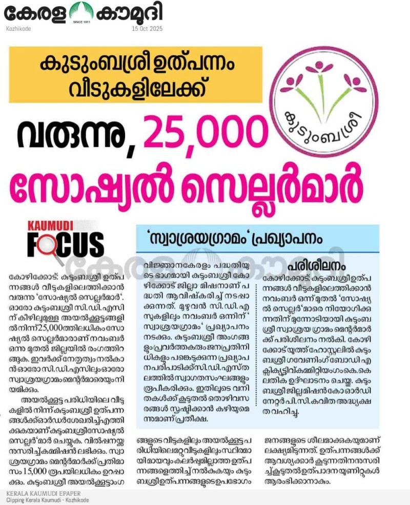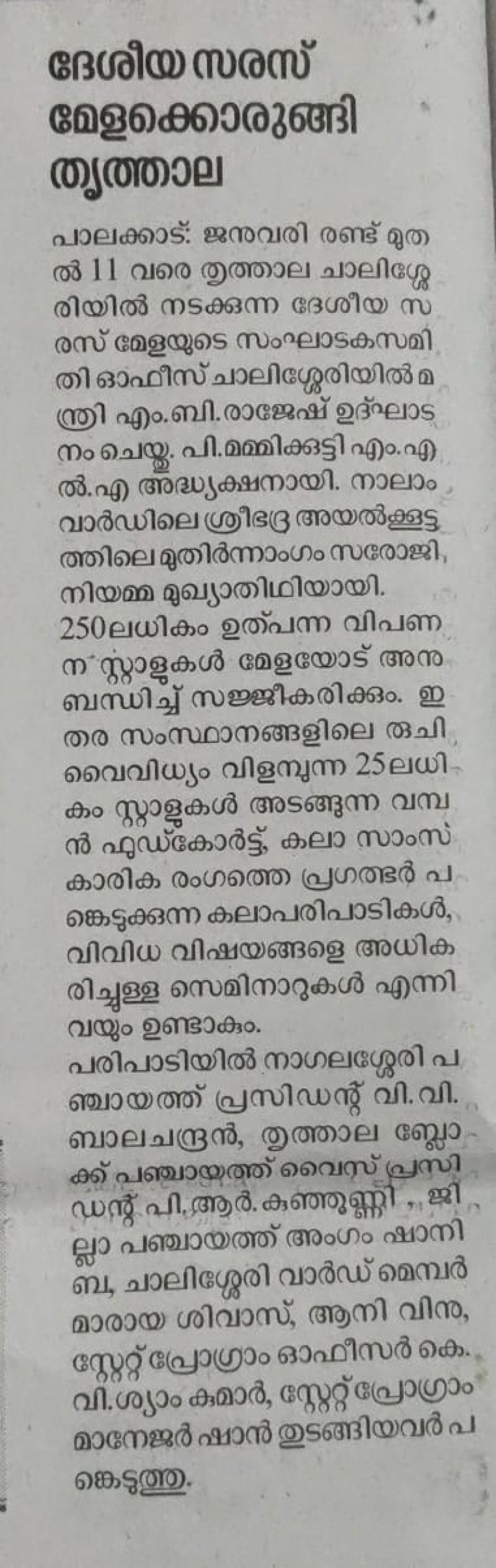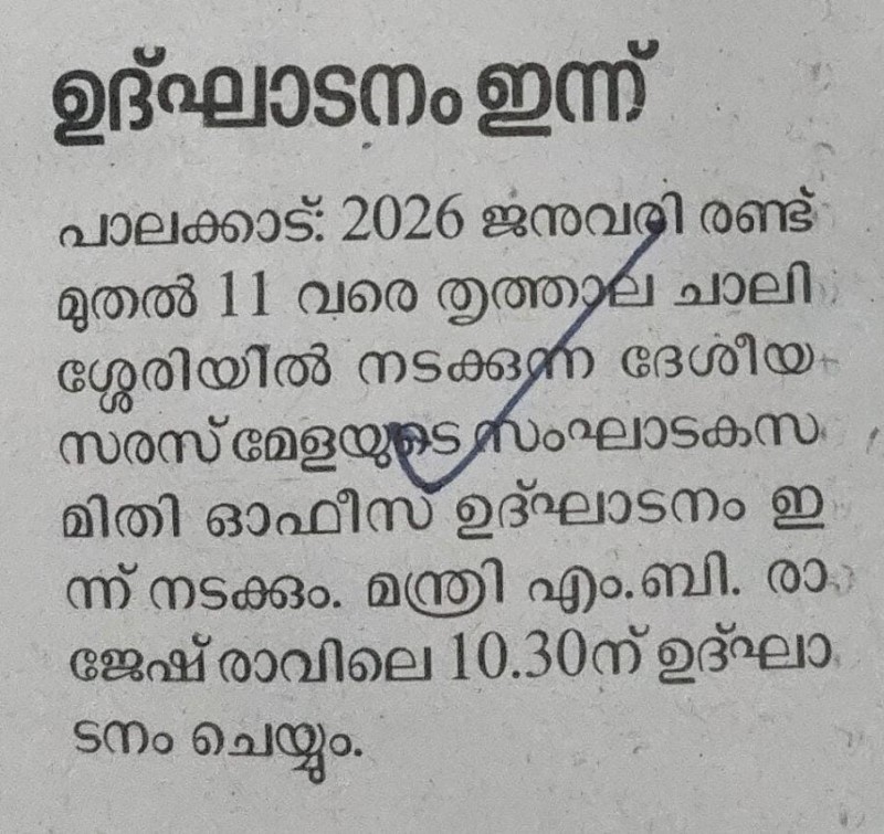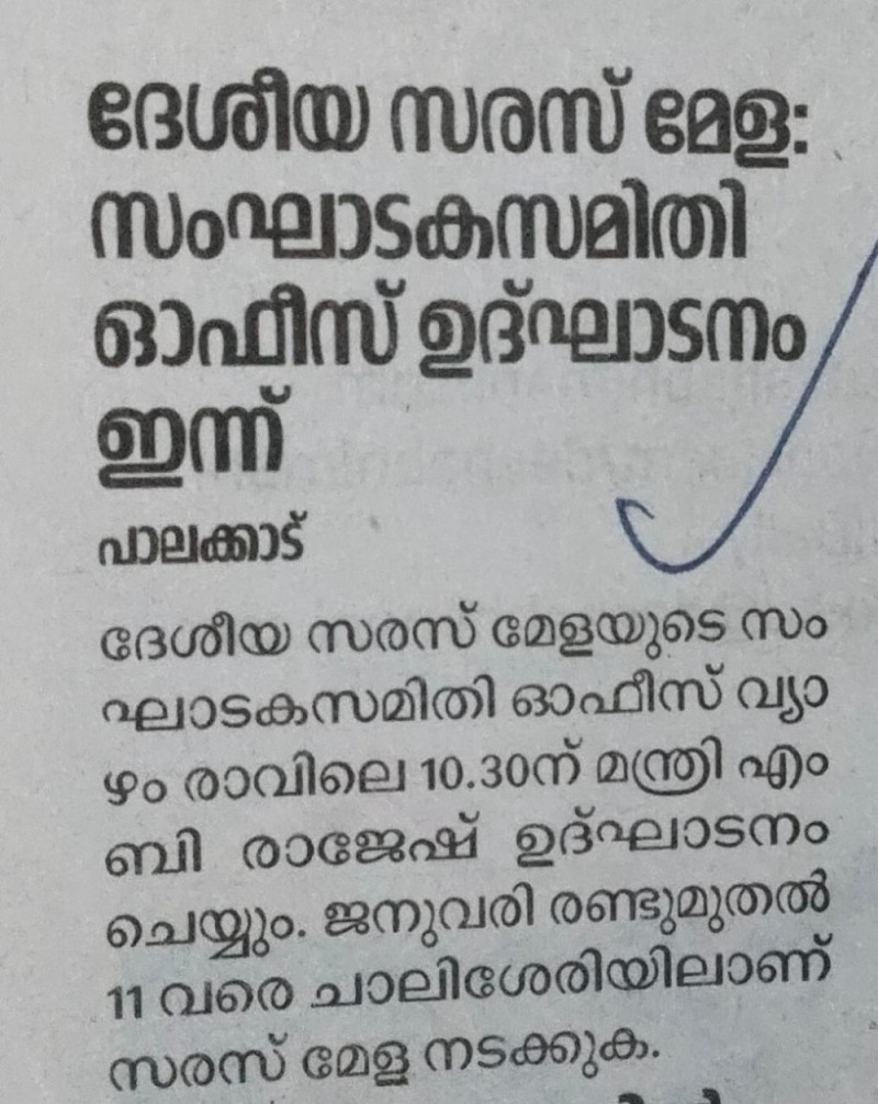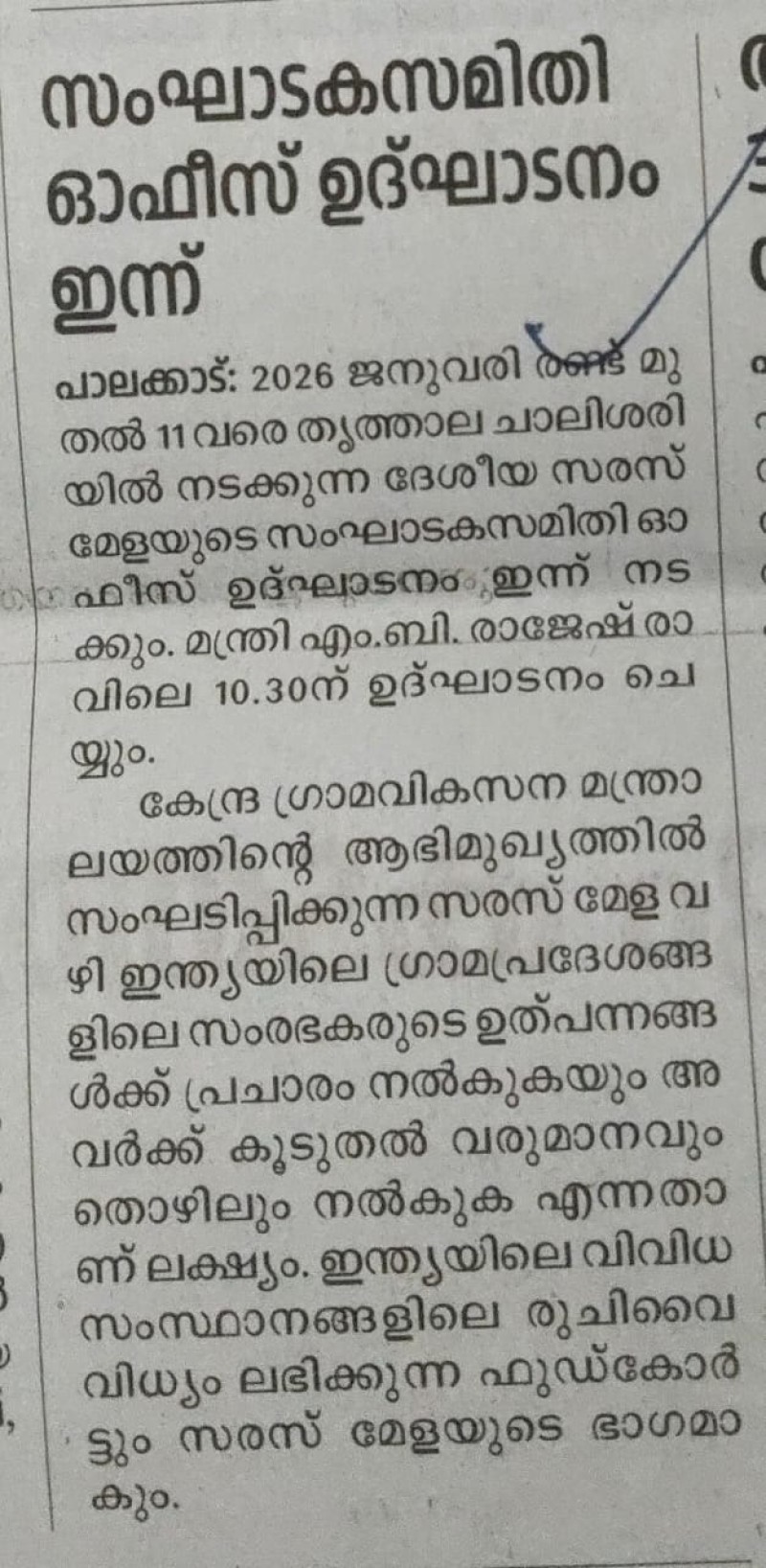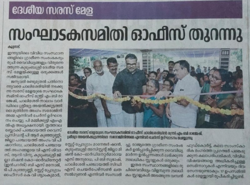 കുടുംബശ്രീ ദേശീയ സരസ് മേള സംഘാടക സമിതി ഓഫീസ് തുറന്നു - 06/11/2025