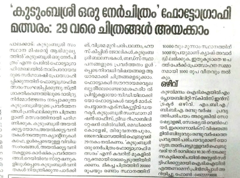 KUDUMBASHREE EXAM CDS WISE, MARADU CDS
