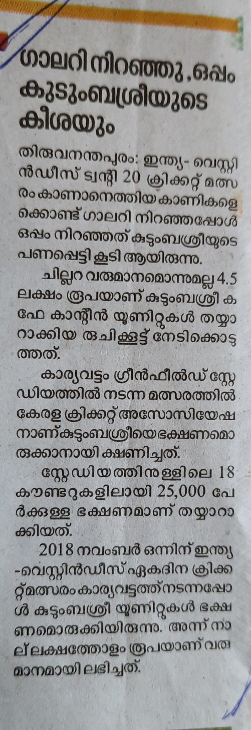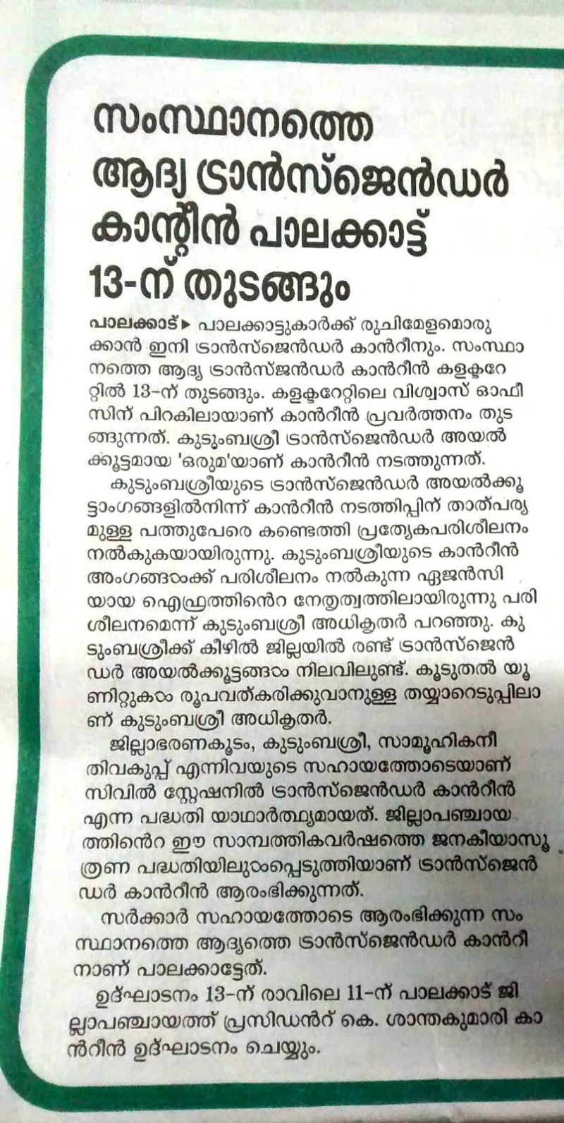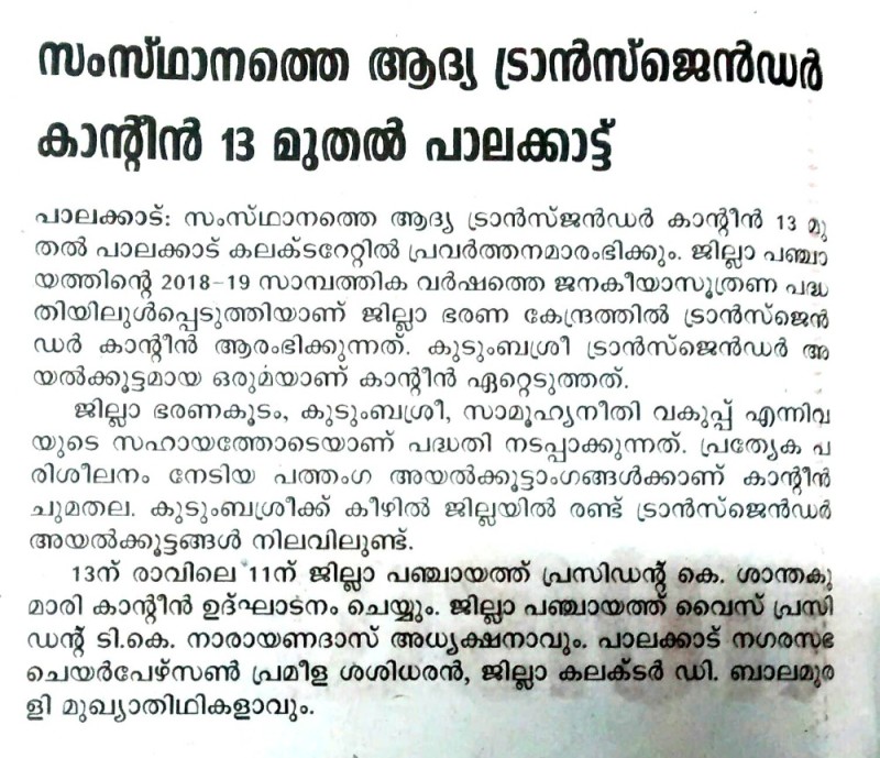 10.12.2019 MATHRBHUMI, Trans Canteen, Palakkad