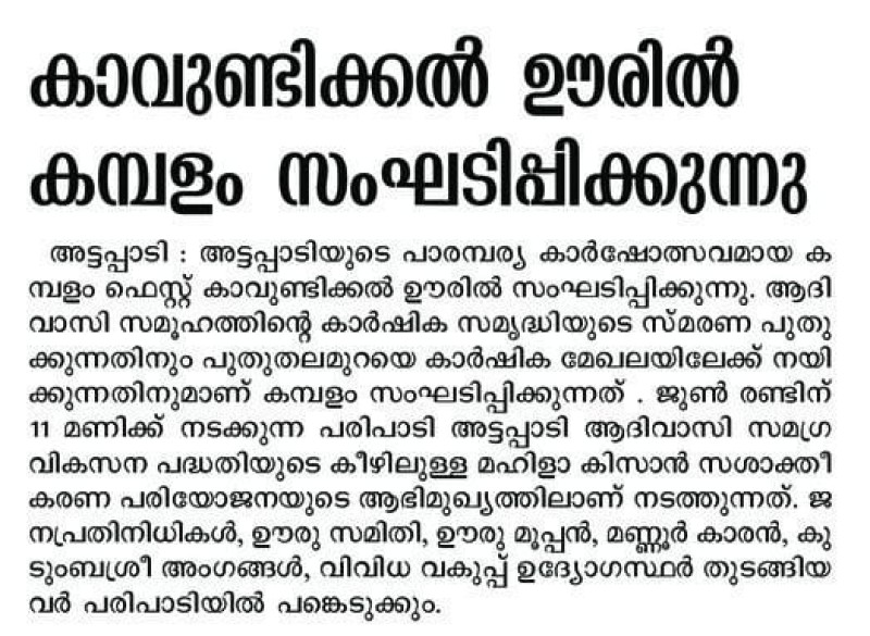 കാവുണ്ടിക്കല് കമ്പളം - ജനയുഗം വാര്ത്ത