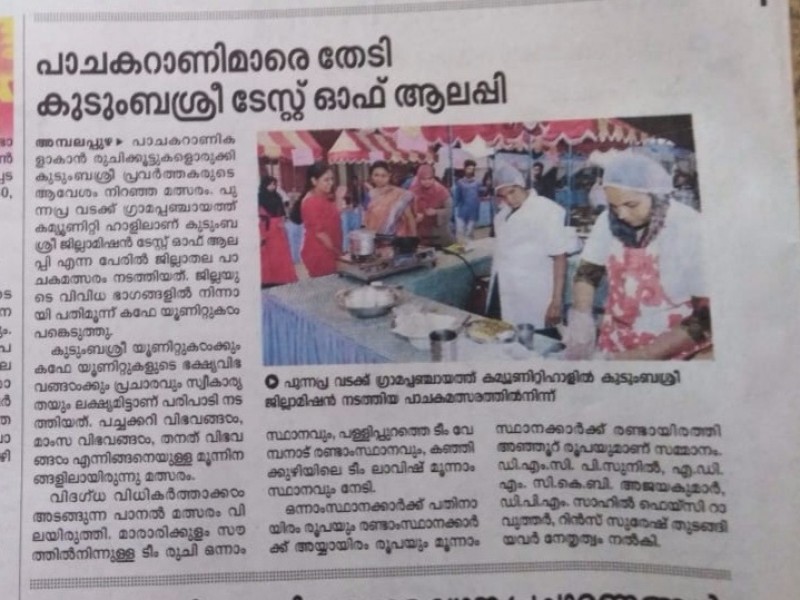 പാചക മത്സരം - ടേസ്റ്റ് ഓഫ് ആലപ്പി.