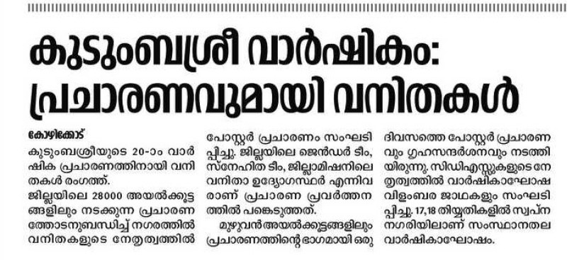 kudumbashree presence at Surakshitha Keralam (Madhyamam - 31/01/2019)