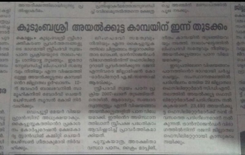 Kudumbashree Bazar - Thiruvalla ( Matrubhumi - 20/01/2019)