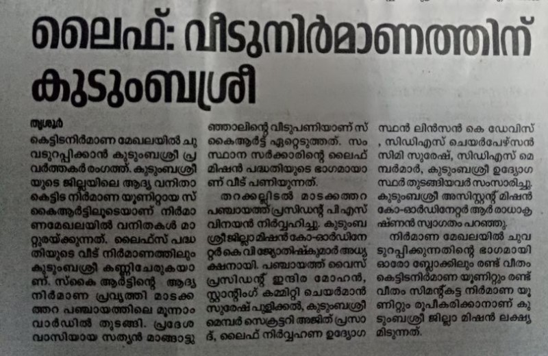 District: Kannur, News about Inauguration of Kudumbashree Life mission project, News Paper : Mathrubhumi Date : 2018 June 27
