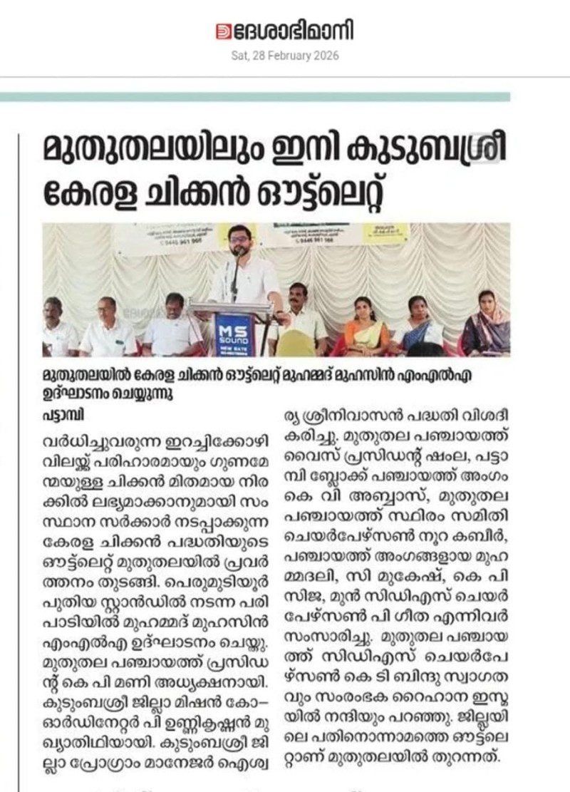 28/02/2026-മുതുതലയിലും ഇനി കുടുംബശ്രീ കേരള ചിക്കൻ ഔട്ട്ലെറ്റ്