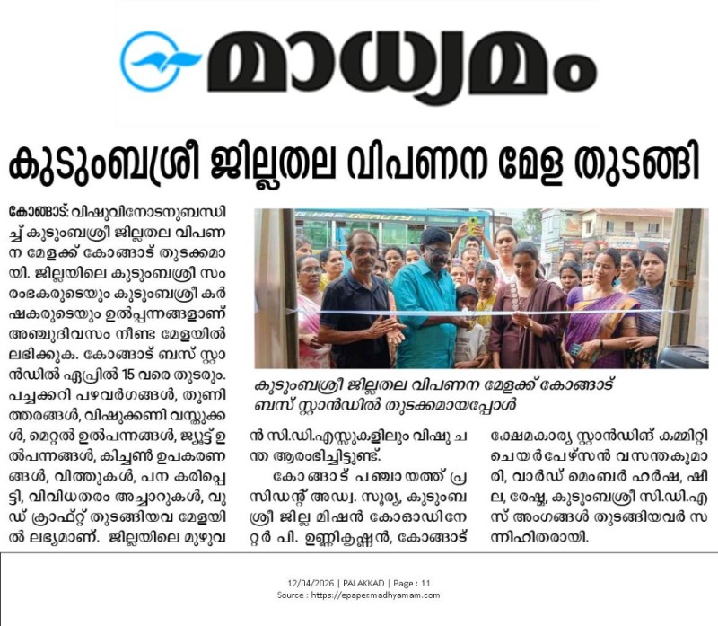 12/04/2026-കുടുംബശ്രീ ജില്ലാ വിപണന മേളയ്ക്ക് കോങ്ങാട്ടിൽ തുടക്കം
