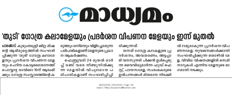 24/02/2026-തുടി ഗോത്ര കലാമേളയും പ്രദർശന വിപണന മേളയും ഇന്നുമുതൽ