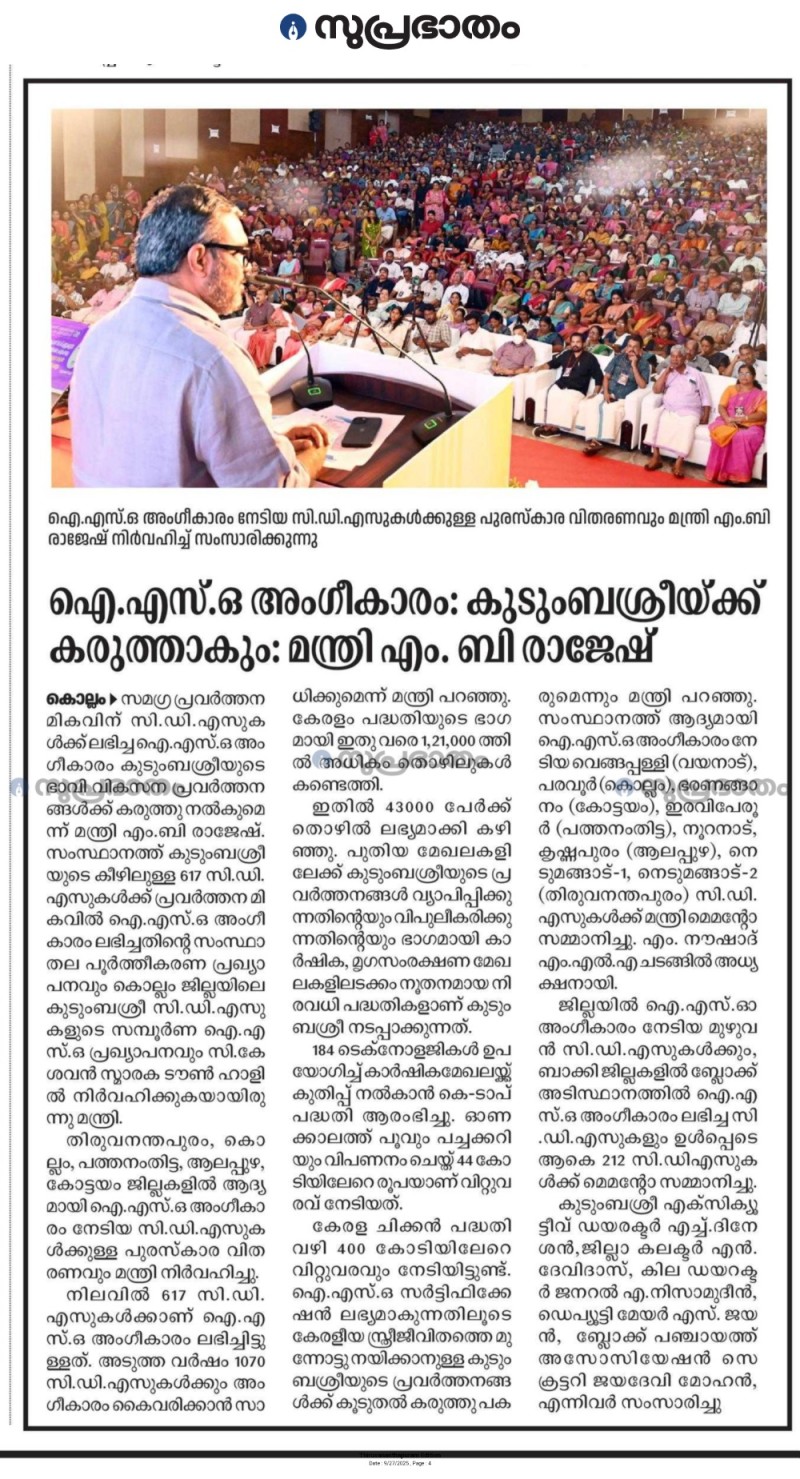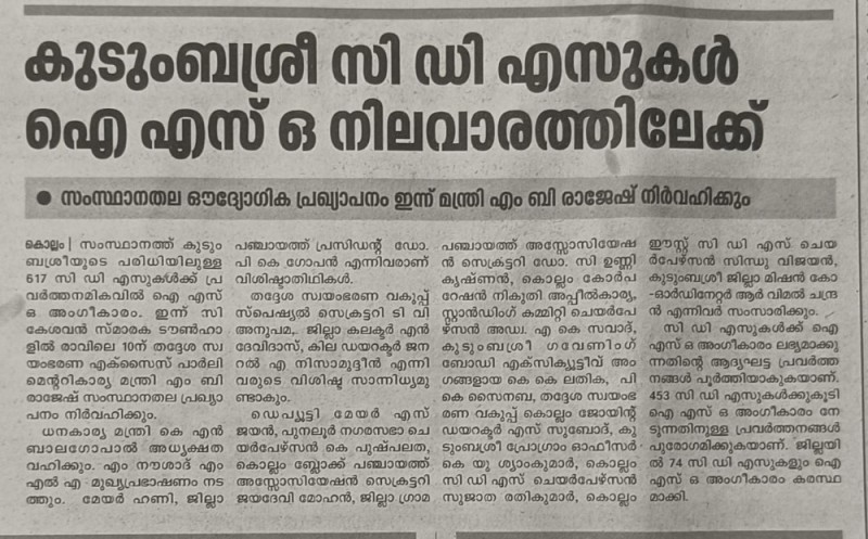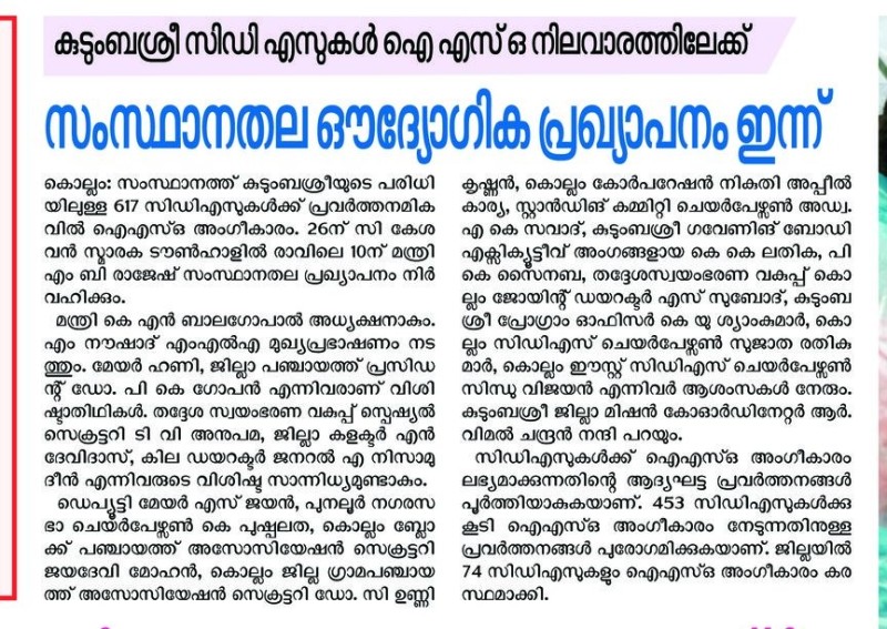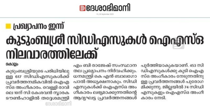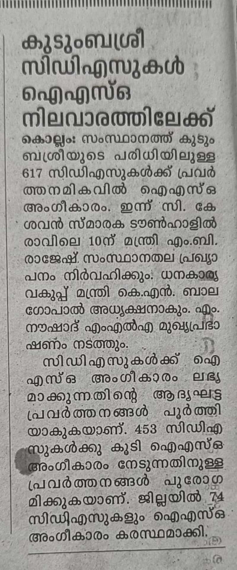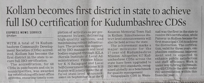 22.09.2025 | Kollam District CDS ISO Certification | The Indian Express