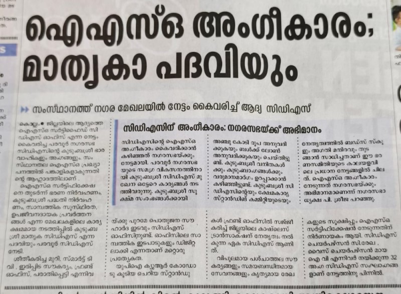 23.09.2025 | Paravoor CDS ISO | Malayala Manorama