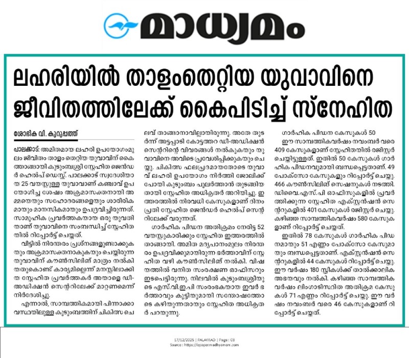 17/12/2025-ലഹരിയിൽ താളം തെറ്റിയ യുവാവിനെ ജീവിതത്തിലേക്ക് കൈപിടിച്ച് സ്നേഹിത